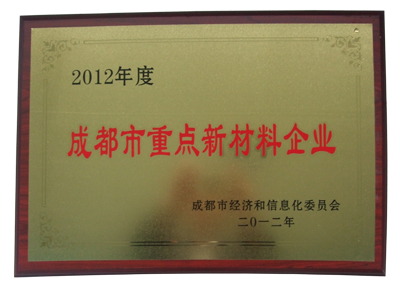 恭喜我公司获“成都市重点新材料公司”的称誉!